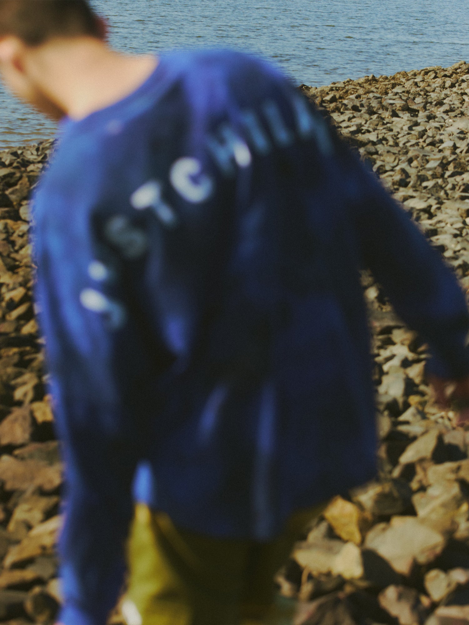 ・ネックリブを細く設定しストリートモードな表情に仕上げている為、上品な首元になっています。
